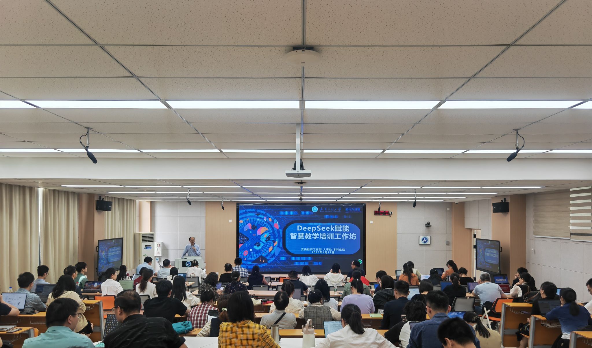 本网讯(通讯员 顾泽文)4月17日和24日下午,为深入贯彻教育部《关于加快推进教育数字化的意见》,落实高校教师数智素养提升要求,学校在流芳校区智慧教室开展了“知行大讲堂”DeepSeek赋能智慧教学工作坊培训活动。校党委常委、副校长喻发全出席并致辞。本次培训活动邀请了“秋叶大叔”张志老师主讲。120余名教师参加了线下培训,线上直播同步进行了学习。党委教师工作部、人事处、本科生院领导参加了活动。