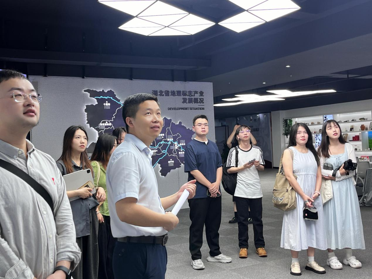 在湖北地理标志运营中心负责人的带领下,学院师生参观了全省17个市州的多项地理标志产品、13件中欧互认地理标志产品、“楚十七”地理标志数字人IP形象、湖北省地理标志大数据展厅、运营中心直播间。随后,通过湖北省地理标志宣传片展示、“楚十七”IP形象影片放映等活动,全体师生对湖北地理标志运营中心的产业咨询、产业规划、产业提升、产业融合等综合服务有了更全面的认识,深入理解“让世界更爱湖北”的目标。