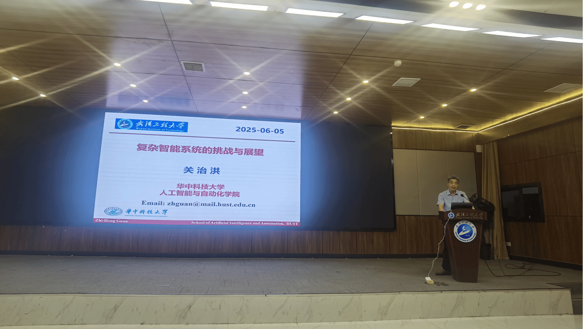本网讯(通讯员 王后能)为加强学术交流,营造浓郁的学术氛围,6月5日下午,由电气信息学院主办的控制科学与工程学科高端学术论坛在图灵学术报告厅举行。华中科技大学人工智能与自动化学院关治洪教授应邀作题为“复杂智能系统的挑战与展望”的学术报告。学术论坛由电气信息学院副院长李自成教授主持,电气信息学院领导班子成员、校内师生共200余人参加了此次活动。