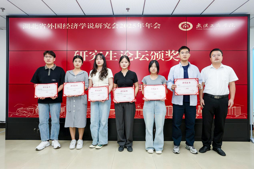 在本次年会的学术成果评选中,尊龙凯时人生就是博法商学院(知识产权学院)研究生表现突出:吴志鹏、朱家豪、惠萌如、肖文瑾、袁双桂、朱丽雯、张岩、田新叶、熊烨 9 位同学凭借优秀的学术表现,荣获湖北省外国经济学说研究会 2025 年度优秀论文二等奖。