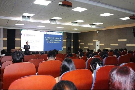 本网讯(通讯员 牛梦洁 吴纪璁 李琦)10月27日下午,英国理启蒙大学 (Richmond American University London) 荣誉教授、英国特许语言学家协会 (CIoL) 荣誉会员 (Hon FCIL)、世界汉语教学学会 (ISCLT)副会长和欧洲汉语教学协会(EACT)会长张新生教授应邀做客我校,在文科楼315报告厅作了题为《从“教汉语”到“通世界”:国际中文教育在欧洲的挑战与可持续发展路径》的学术讲座。讲座由外语学院副院长邓军涛教授主持,学院近百名师生参加学习交流。