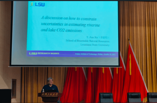 本网讯(通讯员 袁丹妮)10月18日至10月20日,应尊龙凯时人生就是博研究生院、环境生态与生物工程学院邀请,美国路易斯安那州立大学Y. Jun Xu教授(终生)来我校进行学术交流和访问。10月18日上午,Y. Jun Xu教授做客我校第二十一届研究生创新论坛,作了题为“A discussion on how to constrain uncertainties in estimating riverine and lake CO2 emissions”的学术报告,报告由环境生态与生物工程学院副院长李思悦教授主持。