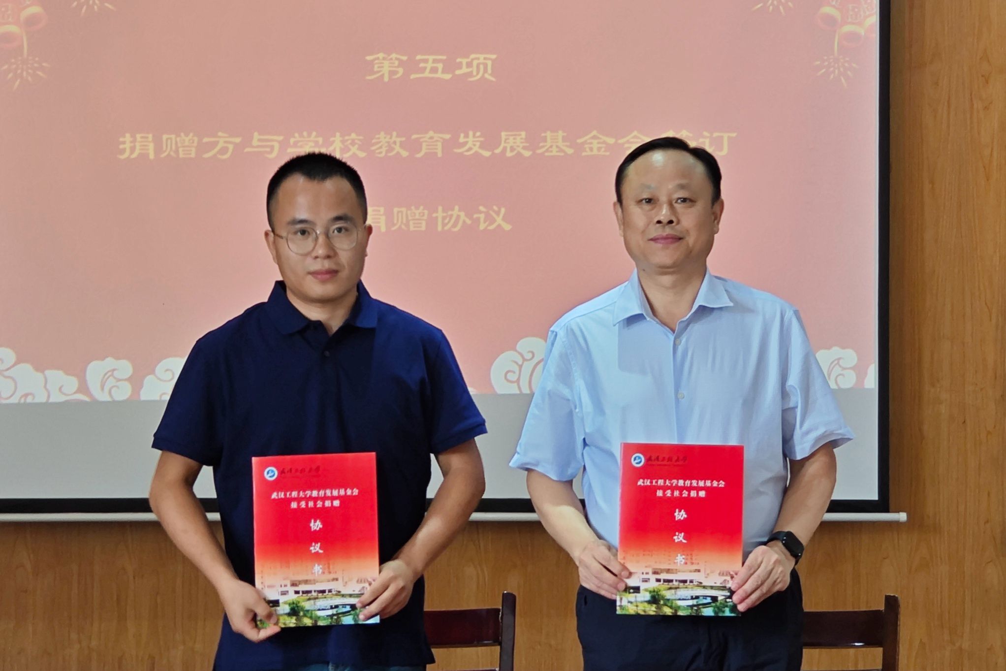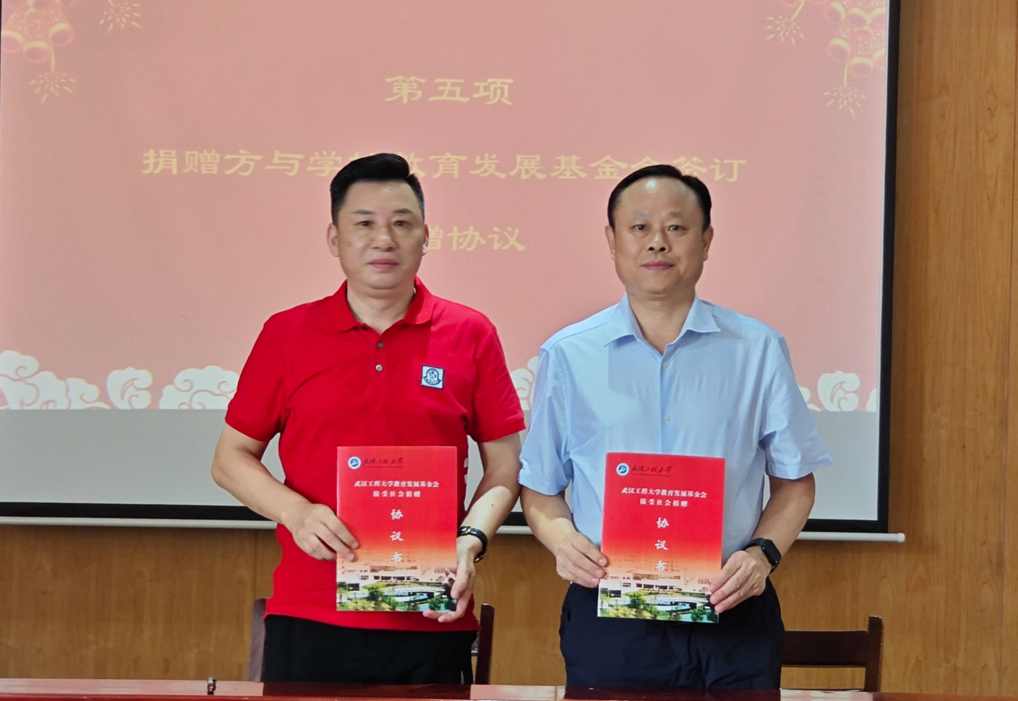 在与会人员的见证下,基金会秘书长邓新洲代表学校教育发展基金会与三家企业代表签订了捐赠协议书。