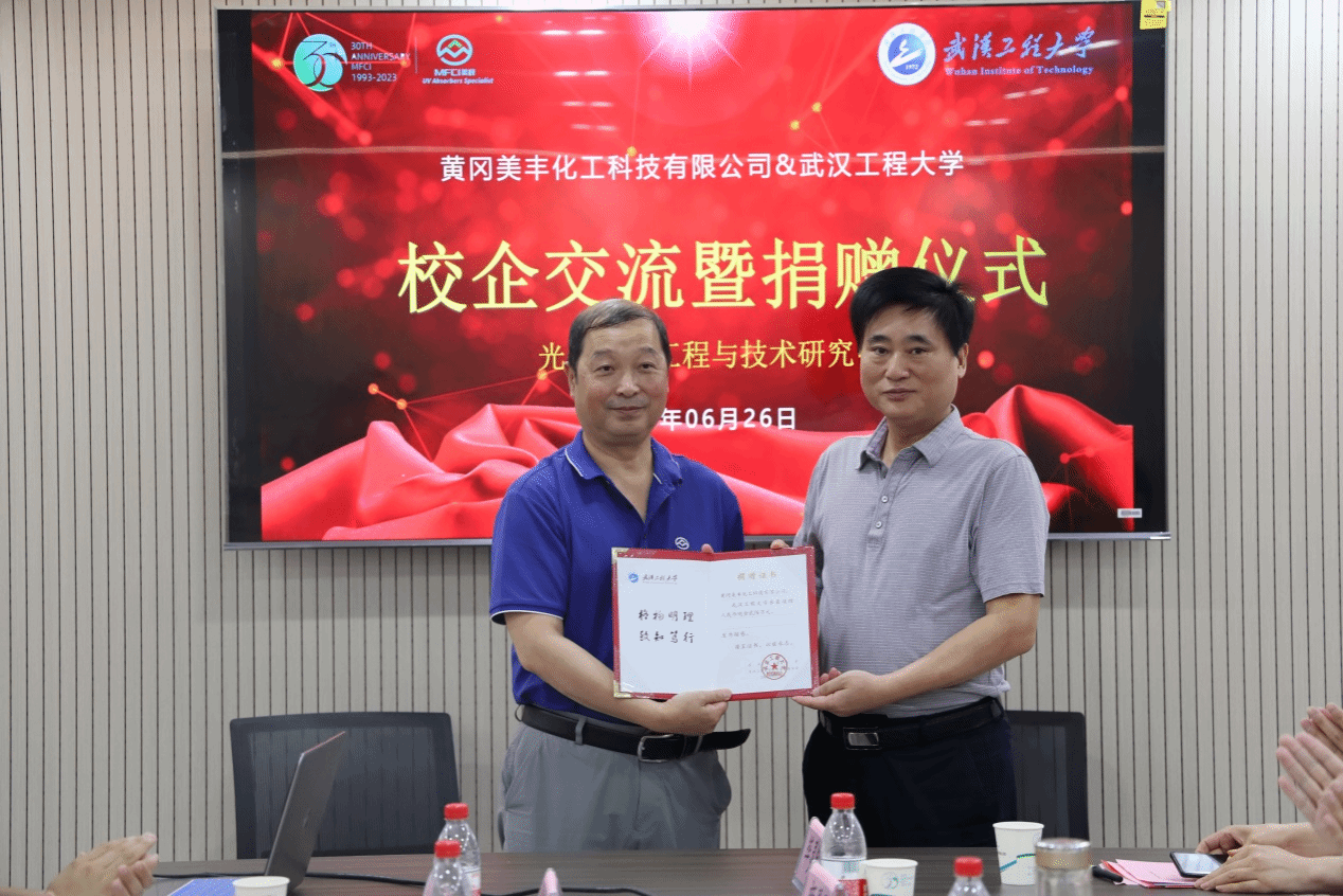 黄冈美丰化工科技有限公司于2020年至2022年期间向学校捐赠500万元建设“光化学品工程与技术研究中心”,并于今年继续捐赠200万元用于中心建设。