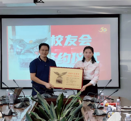 会上,正校级干部叶芃首先代表学校向厦门校友会颁发了50周年校庆邀请函。