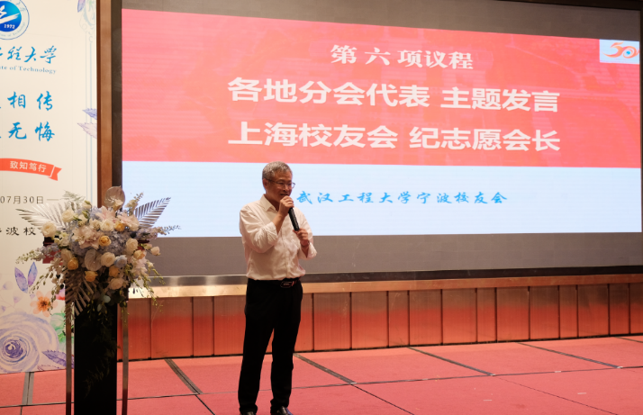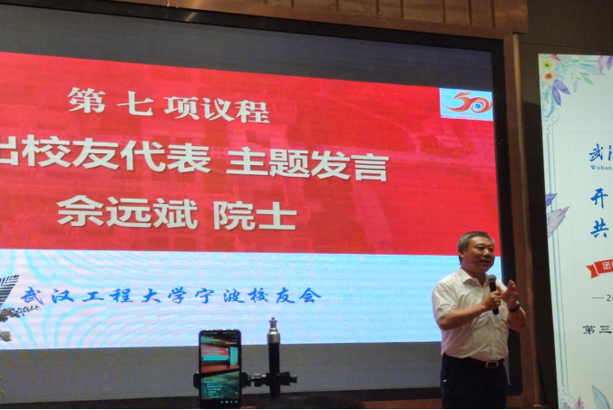 欧洲自然科学院佘远斌院士作为杰出校友代表讲话,对宁波校友会第三届理事会换届大会的举行表示热烈祝贺的同时回顾了自身奋斗成长过程,对母校表达了感恩之情,勉励宁波校友们踔厉奋发,笃行不怠。