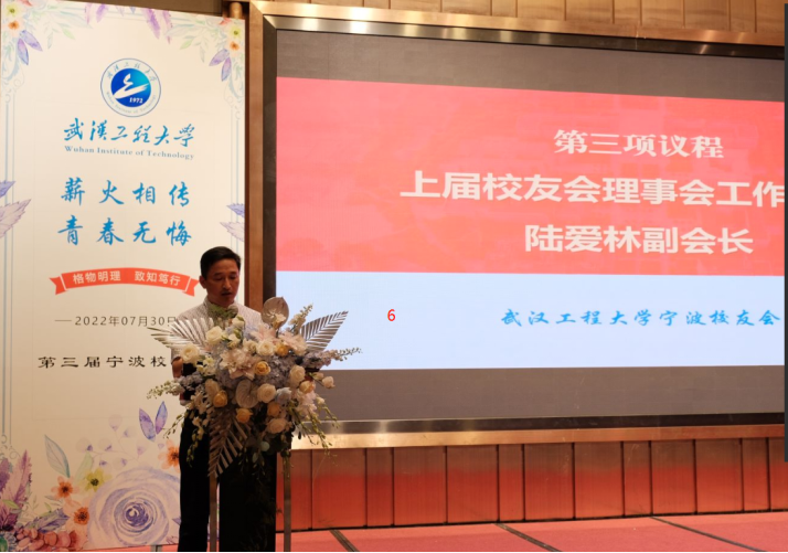 宁波校友会第二届理事会陆爱林副会长做工作报告。他全面回顾了第二届任期以来宁波校友会的主要工作,尤其是积极践行社会责任,以实际行动反馈母校方面做了重点总结,同时对大力支持宁波校友会发展的母校领导们表示了衷心感谢。