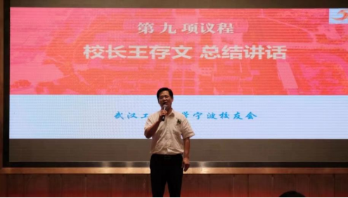 会上,校长王存文作重要讲话。他代表学校及校友总会对宁波校友会第三届理事会换届大会的举行表示热烈祝贺,向在甬校友表示最亲切的问候。他指出,在以周剑凌同志为会长的第二届宁波校友会的坚强领导和不懈努力下,在凝聚校友、传播校情、回馈母校、奉献社会等方面做出了突出的贡献。希望新一届宁波校友会理事会继续以“团结严谨,勤奋求实”的优良校风凝聚校友;以“共享共建”的愿景目标搭建校友交流平台,共同关注母校的发展,为母校的建设建言献策,将校友的力量融入到一流学科、一流大学的建设当中去。