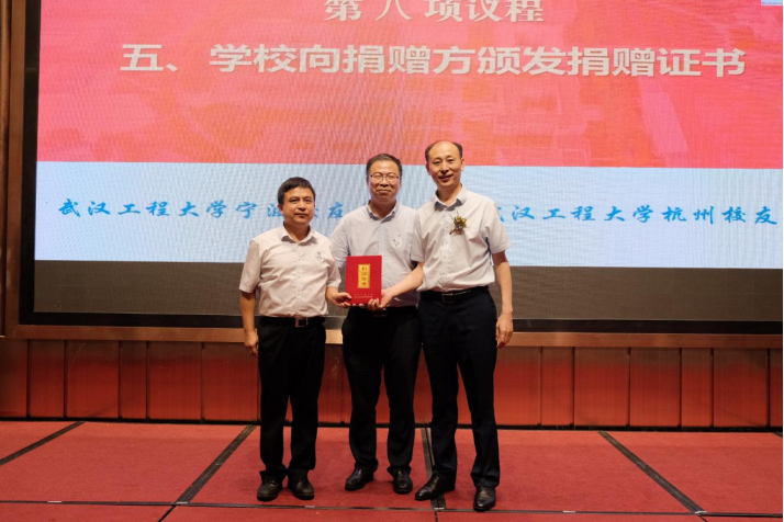 会上,还举行了浙江校友向尊龙凯时人生就是博教育发展基金会捐赠签约仪式。副校长喻发全向浙江校友颁发了捐赠证书,浙江校友代表周剑凌与基金会秘书长邓新洲签署了捐赠协议,副秘书长毕灵敏代表基金会接受了由周剑凌和侯平智代表浙江校友捐赠的支票。受益单位代表化工与制药学院党委书记汪铁林、土木工程与建筑学院党委书记陆新分别致答谢词。仪式由学校党政办主任但继恩主持。
