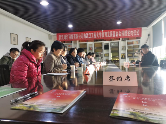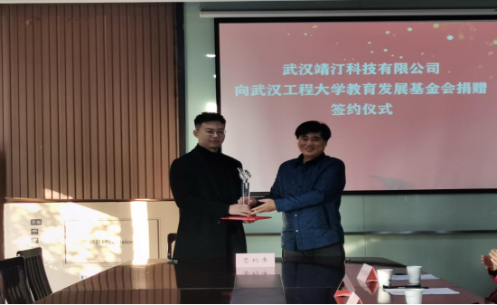 本网讯(通讯员 郑民源 罗琼)12月23日上午,武汉靖汀科技有限公司向学校捐赠300万用于“数字影像协同创新设计中心系统”项目建设,签约仪式在艺术设计学院会议室举行。正校级干部、学校基金会理事长叶芃,我校2013级动画专业校友、企业总裁李雨宸先生,公司品牌策划总监董雪俏女士出席仪式。仪式由学校基金会秘书长邓新洲主持。