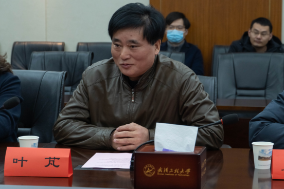叶芃致欢迎辞,他详细地介绍学校近年来人才培养、科学研究、师资队伍、社会服务等方面建设情况,并表示希望以此次捐赠为契机,创新合作模式,扩大合作范围,打造深层次校企合作平台,在人才培养、科研难题攻关上深入融合、相互促进,取得新的更好成绩,实现合作“双赢”。
