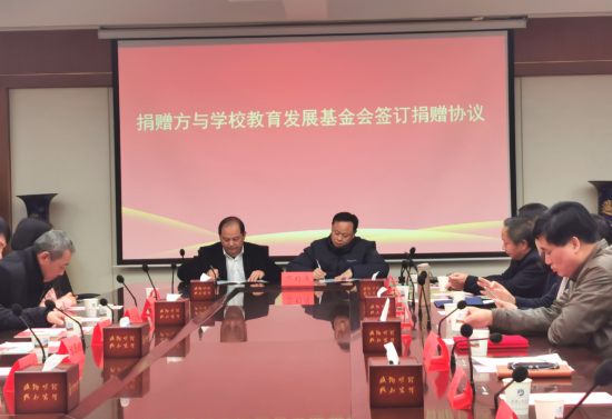 邓新洲代表学校教育发展基金会与蔡再华签订了捐赠协议书。