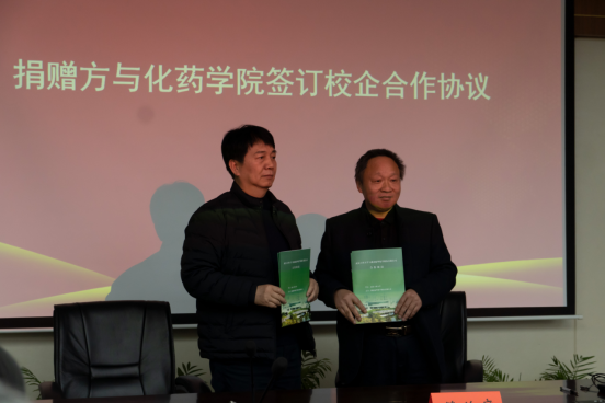 化工与制药学院沈喜洲教授与总经理柯愈胜签订了校企合作协议书。