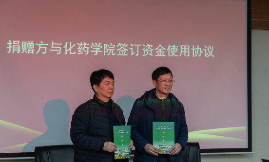 化工与制药学院院长汪铁林与总经理柯愈胜签订了资金使用协议书。