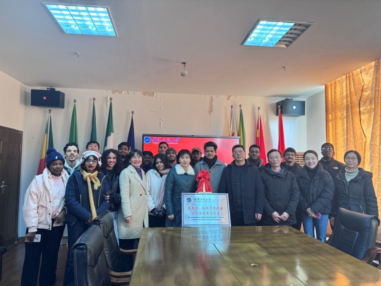本网讯(通讯员 陈小红)12月22日下午,校图书馆和国际学院在武昌校区举行共建留学生阅览室揭牌仪式。图书馆馆长杨述斌、副馆长刘文波,国际学院副院长(主持工作)杜春丽、副院长余响林,图书馆及国际学院相关老师及留学生代表参加仪式。