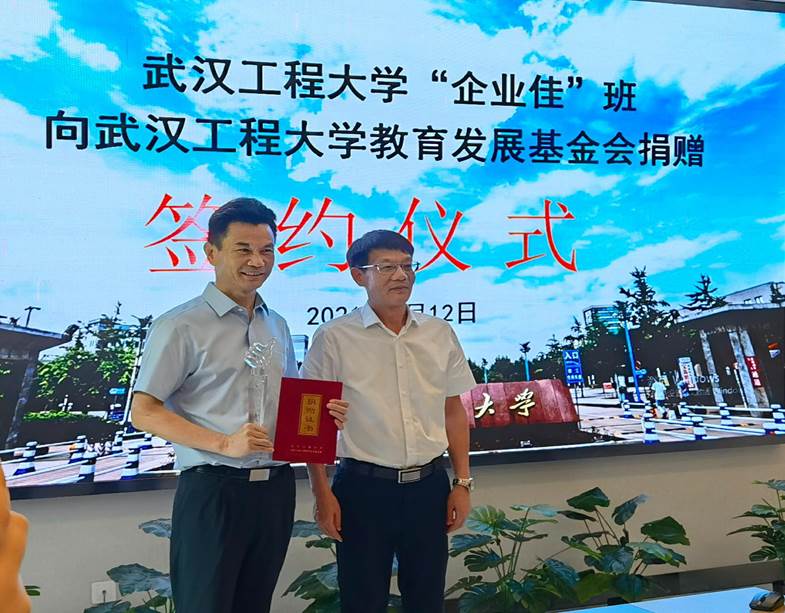 方文海副校长代表学校向捐赠方颁发了捐赠证书和教育贡献奖杯。