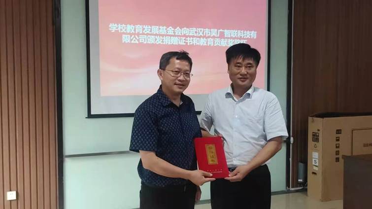 叶芃代表学校对武汉昊广智联科技有限公司董事长陈天来先生的慷慨捐赠表示感谢。他在致辞时强调,学校和学院的发展和进步离不开社会各界的关爱和帮助。希望双方能够加强校企合作,积极探索产学研结合的新方向和实施路径,期待校企合作之花盛开,结出更多丰硕成果,达到相互促进、共同发展的目的,实现合作共赢。