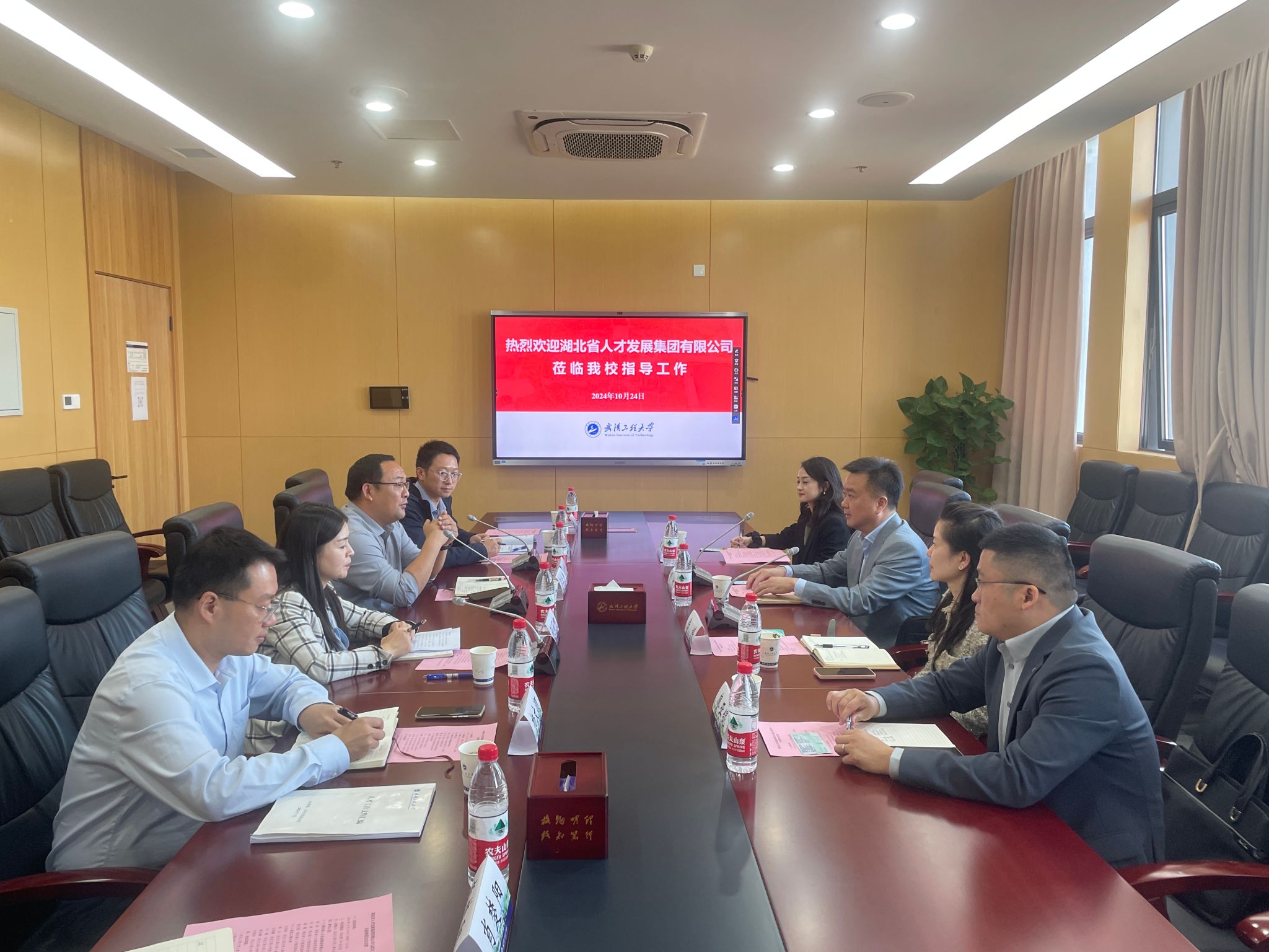 本网讯(通讯员 肖楚阳)10月24日下午,湖北省人才发展集团有限公司党委副书记、总经理彭虹带队来校调研交流,座谈会在综合楼704会议室举行。会议由人事处处长吕容涛主持。