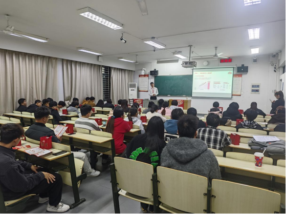 袁远航和王振分别从公司发展历史、岗位方向、服务内容、企业文化、人才培养等方面介绍企业发展情况,希望学院推荐更多人才到企业就业,进一步加强校企交流合作,实现共同发展。随后,在宣讲会上企业代表全方位的介绍了公司情况及本次招聘岗位、条件,并与应聘学生进行热烈互动,详细解答同学们的疑问。