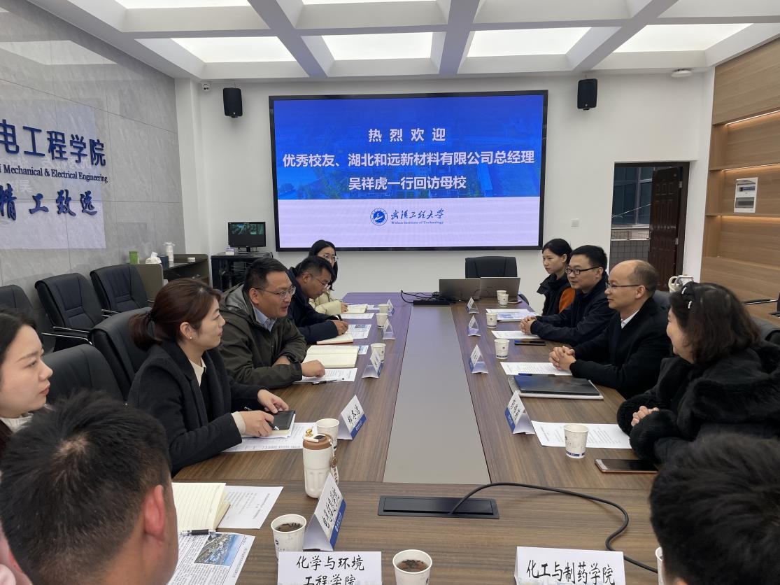 本网讯(通讯员 万浩天)12月5日下午,优秀校友、湖北和远新材料有限公司总经理吴祥虎一行回访母校并开展招聘宣讲活动,电气信息学院党委副书记周磊、材料科学与工程学院党委副书记马科、环境生态与生物工程学院党委副书记郑冬洁及相关学院毕业生辅导员参加此次座谈。会议由机电工程学院副院长林纬主持。