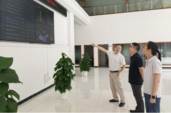 在企业副董事长、总裁卢春明、总裁办公室主任闵春、人力资源部经理覃玉莲的陪同下,於世为一行实地参观了企业车间、研发中心,深入了解企业完善的技术创新组织体系以及智能电网领域的创新研发成果。