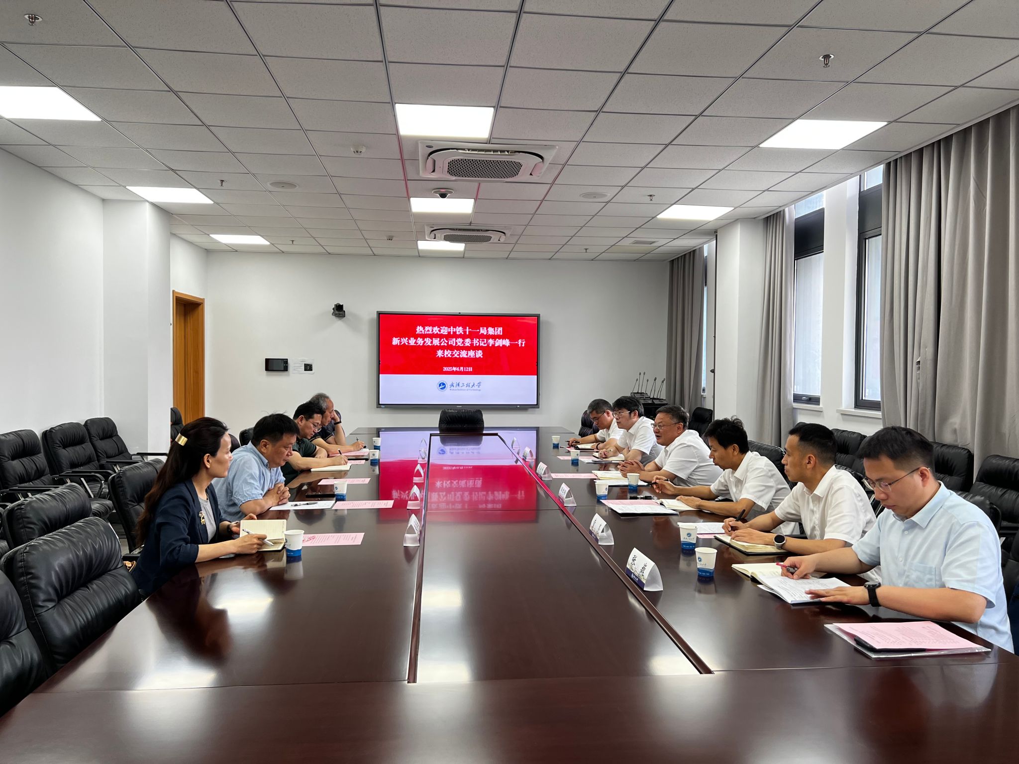 本网讯(通讯员 胡杰)6月12日上午,中铁十一局集团新兴业务发展公司党委书记李剑峰率队来校调研交流,交流座谈会在综合楼829会议室举行,会议由科学技术发展院副处长闫志国主持。