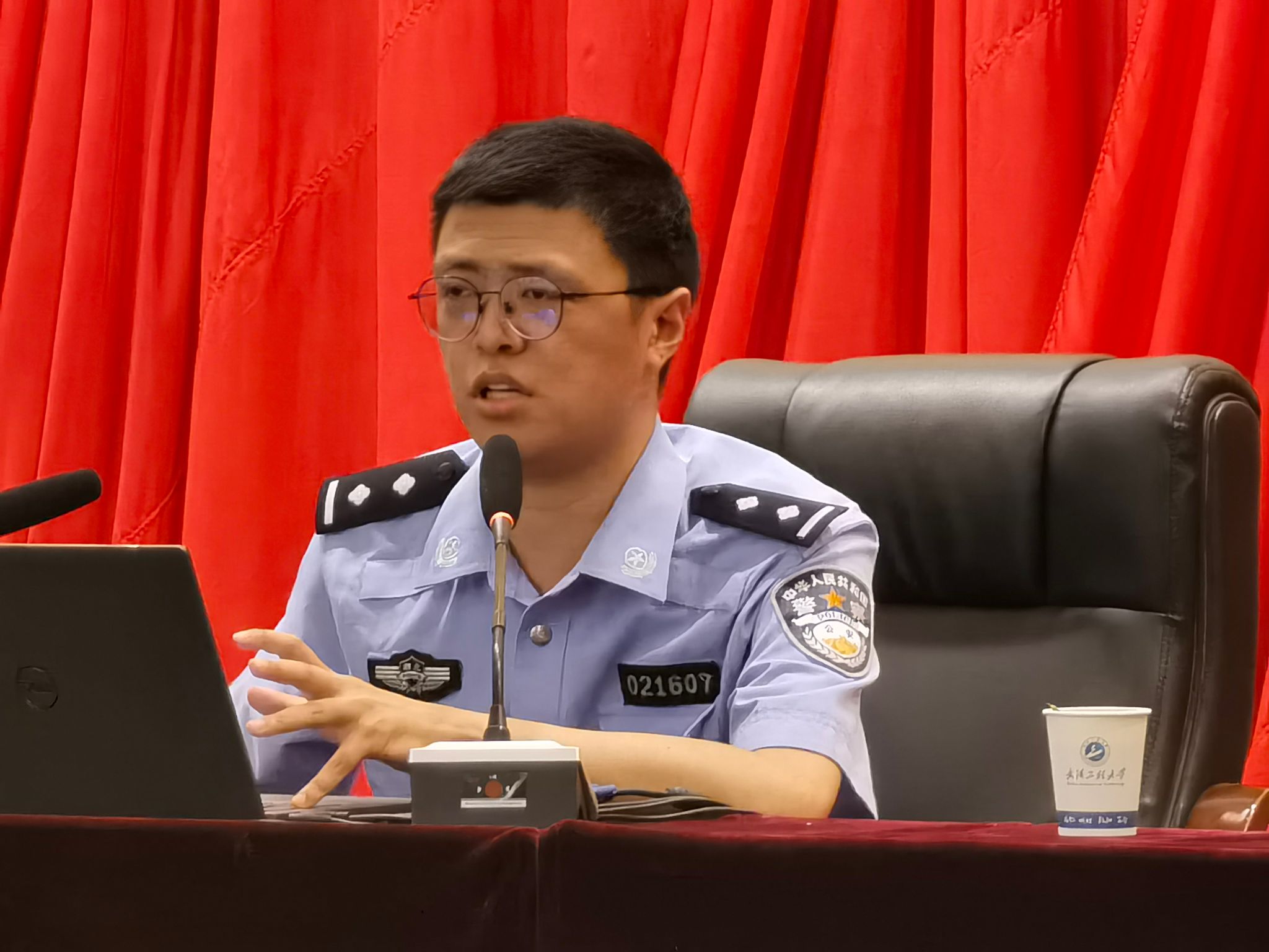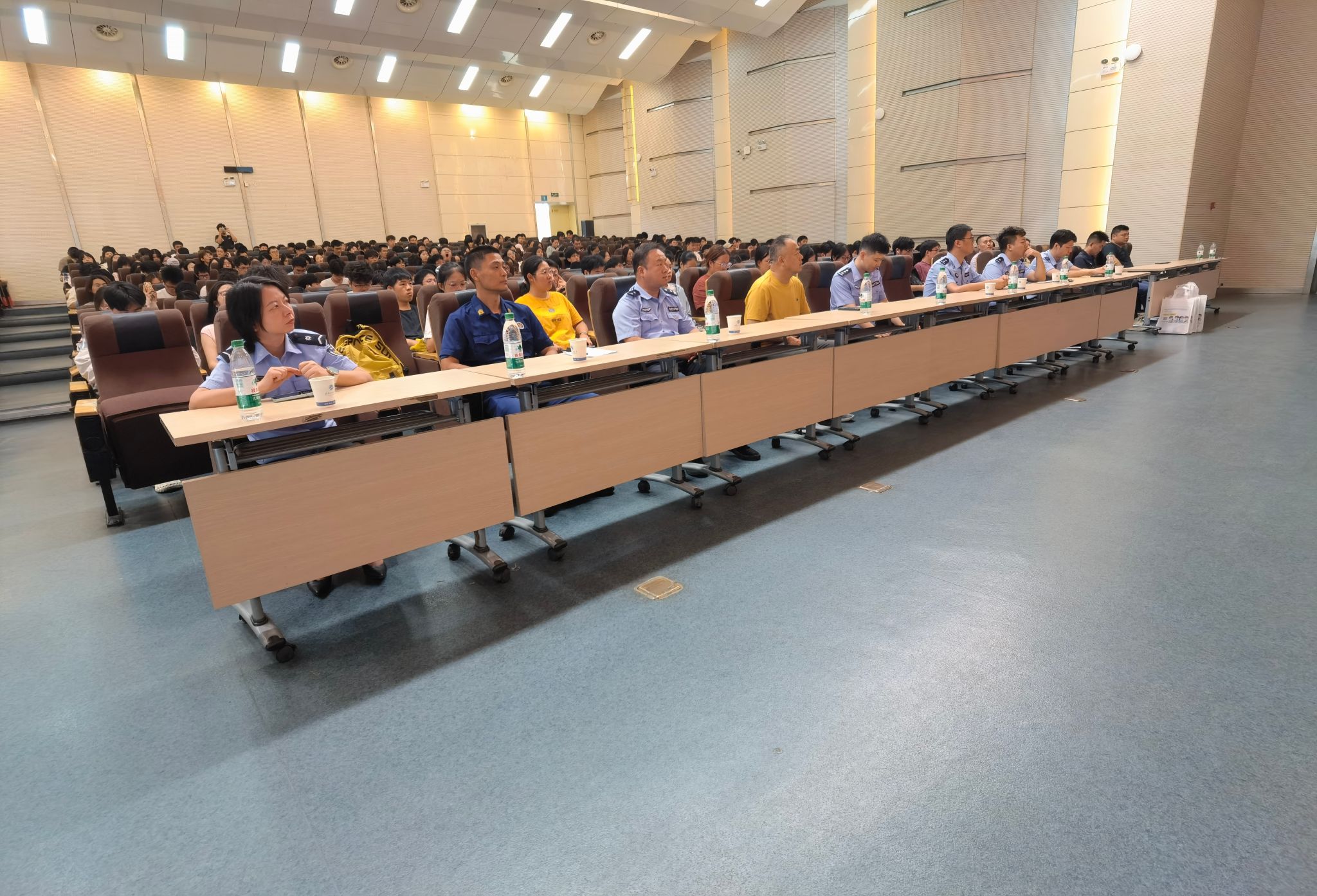 本网讯(通讯员 段淞 瞿登)9月27日下午,由学工部、研工部、保卫部联合举办的“警校同心,共筑安全”大型系列巡回宣讲活动在四教多功能报告厅成功举办。活动旨在着力提升师生防范电信网络诈骗能力和全面掌握交通安全出行、了解禁毒知识和消防知识,东湖新技术开发区公安分局反恐(国保)大队队长高飞、副队长孙军、业务骨干刘晓琦警官、五位授课教官以及400余名师生代表参加了活动。