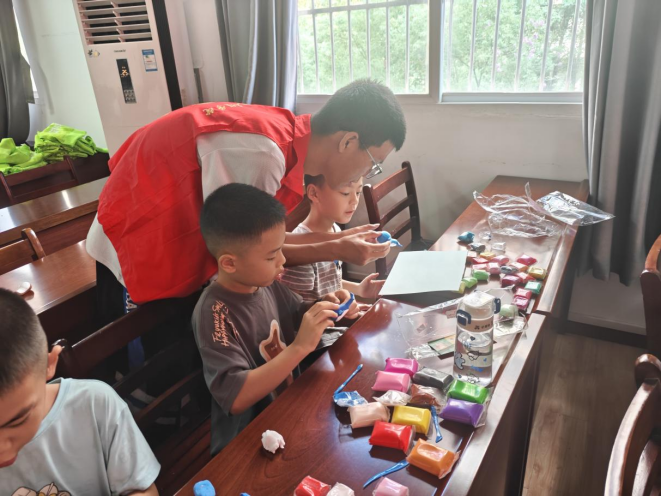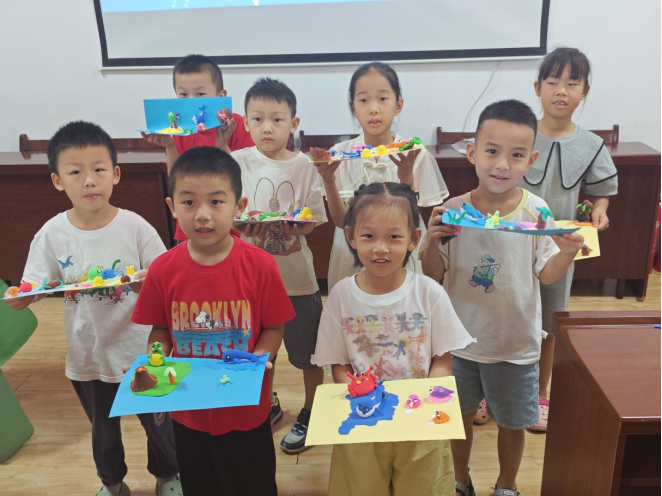 宣讲结束后,志愿者与孩子们一同制作黏土画,小小的房间里充斥着孩子们的欢声笑语,洁白的双手下一幅幅鲜活的图画被创作,孩子们望着自己努力的成果,露出开心满意的笑容,并纷纷表示自己要成为长江的守护者。