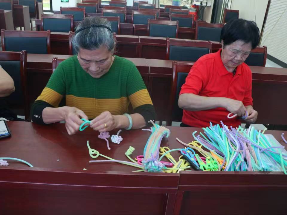 随后,志愿者们组织了一场以扭扭棒和剪纸为主题的手工活动。在活动中,志愿者们耐心地指导老人们使用扭扭棒制作花朵,并协助他们完成剪纸作品。他们细致地讲解每一个步骤,并亲自示范,帮助老人们制作出自己喜爱的作品。在志愿者的协助下,老人们不仅掌握了新的技能,还感受到了节日的氛围和温暖的关怀。