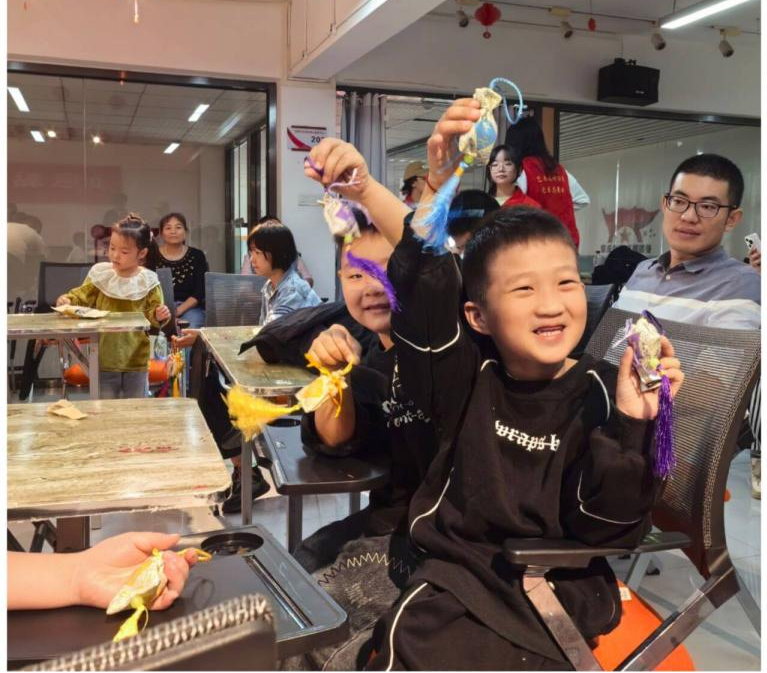 随后,志愿者带领小朋友制作香囊。香囊作为传统手工艺品,选择香料、缝制和装饰香囊,让小朋友了解并传承这一传统文化。志愿者和小朋友将制作的香囊赠送给老年人。志愿者还前往社区退伍军人的家中探望慰问,与他们亲切交流,并致以节日的问候和祝福。