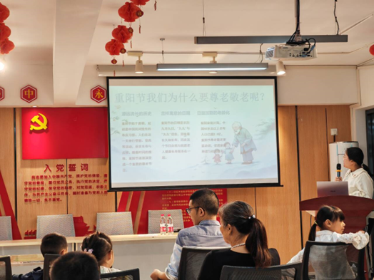 活动伊始,志愿者通过知识讲解、视频科普与互动问答的形式向社区小朋友介绍了重阳节的传统习俗,培养他们的尊老爱幼意识。
