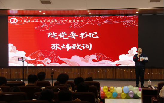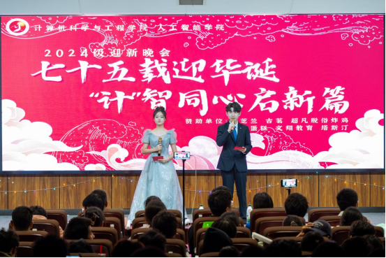 本网讯(通讯员 瞿菲菲 郑鹤然)10月24晚,计算机学院“七十五载迎华诞、‘计’‘智’同心启新篇”2024年迎新晚会在图灵报告厅举行。党委学工部、武装部副部长徐凯,校团委书记邓欢,学院领导班子、全体辅导员及2024级新生齐聚一堂,共享视听盛宴。本次晚会通过学院B站进行同步直播。