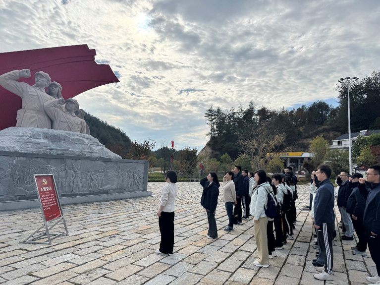 本网讯(通讯员 张晓萌 赖晓敏)10月28日,法商学院(知识产权学院)组织学院教师党员代表前往长征国家文化公园英山园区开展党纪学习教育主题实践活动。活动邀请黄冈市第六届人大代表陈小红讲授微党课。