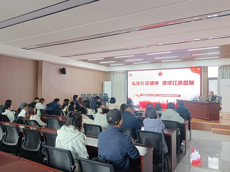 弘扬长征精神,延续红色血脉。在园区三楼会议室,黄冈市第六届人大代表、英山县委党校高级讲师陈小红为学院教师党员讲授一堂微党课,通过介绍长征的基本情况、解析长征精神的内涵,生动诠释了“坚定信念、不怕牺牲、独立自主、顾全大局、依靠人民”的长征精神,并强调铁的纪律是长征伟大胜利的重要保障。