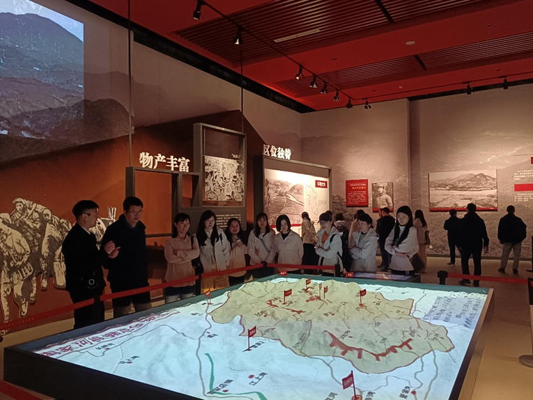参观历史场馆,感悟长征精神。在讲解员的带领下,大家参观了中国工农红军第二十五军革命历史陈列馆,通过参观丰富详实的革命历史文物资料、沙盘、图表、模型,结合馆内声、光、电等现代手段,沉浸式学习红二十五军在英山浴血战斗的英雄事迹。