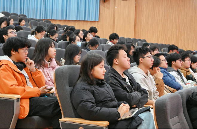 蔺水净导演以“进门”为主题,分享了从行业新手成长为专业人士的亲身经历。他结合个人职业生涯中的有趣故事,深入浅出地讲解了进行影视创作前的准备、拍摄过程中可能面临的挑战,以及如何最大化地发挥自己的长处。他强调,创作离不开“喜爱和热爱”,并鼓励年轻一代电影艺术爱好者大胆去创作,勇敢表达自己。在同学提问环节,蔺导结合自己在影视创作领域的多年经验,为同学们答疑解惑,并鼓励青年创作者关注这个时代的问题,拍出年轻人自己的影片。