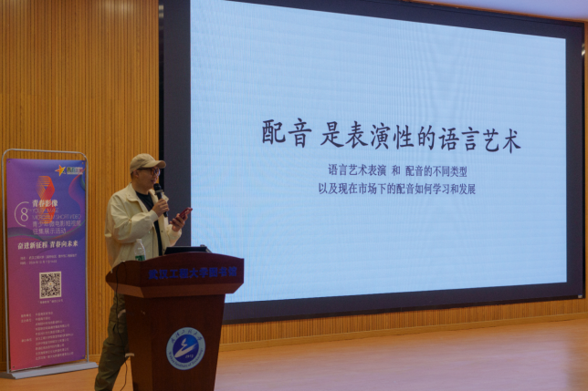 配音演员李凤良就配音这一表演性语言艺术做了深度分享。活动现场,李凤良邀请了四位同学一同为诗歌《乡愁》现场配音,通过对作品情感基调及表演技巧进行细心打磨,为同学们展现了精彩的声音盛宴。同时,他谈到,配音艺术没有绝对答案,也不存在固定标准,真情实感才是配音创作的灵魂。李凤良以其专业而富有感染力的配音表演,感染现场每一位观众,让大家对配音有了更深入的认识。