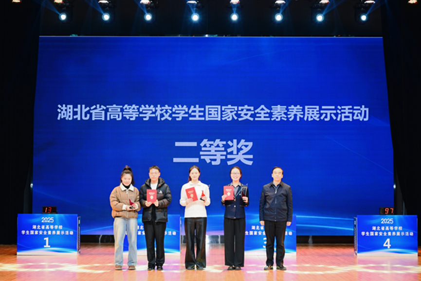 本网讯(通讯员 王颖)2025年1月11日,2025年湖北省高等学校学生国家安全素养展示活动在中南财经政法大学南湖校区落下帷幕。法商学院(知识产权学院)4名学生代表参赛,在经过笔试、安全公开课、一战到底等环节的激烈角逐,最终取得总排名第三的优异成绩,荣获全省二等奖。