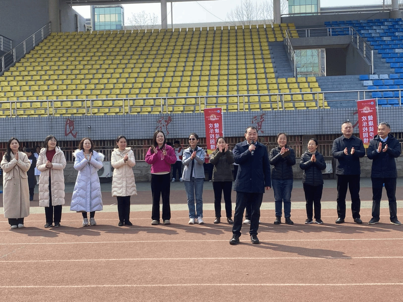 本网讯(通讯员 徐春梅 高靖)阳春三月迎芳华,巾帼英姿展风采。3月6日,在学校田径运动场,为喜迎第115个“三八”国际劳动妇女节,举办校园健康徙步行。校党委副书记、工会主席李志旭出席了开幕式并致辞,活动由工会常务副主席鲁晓君主持,相关职能部门负责人、各分党委(总支、直属党支部)书记及各分工会主席出席,1000余名女教职工参加活动。
