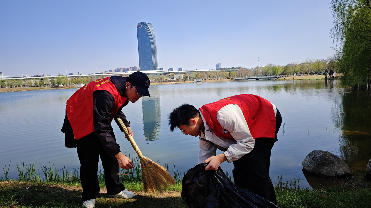 同时,学院组织30余名志愿者到汤逊湖沿岸开展湖畔垃圾清理活动,同学们手持环保袋沿着湖岸线行动,通过"环保+运动"的新颖形式,既通过运动舒展身心,增强青年学子的环保意识,又以实际行动传承雷锋精神,改善湖岸环境状况。