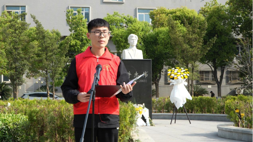 学生代表赖闽韬分享了自己在许志伟志愿服务队的点滴,他倡议同学们要以更坚定的信念、更扎实的行动,让许志伟精神在服务国家、奉献社会的实践中绽放新的光芒。