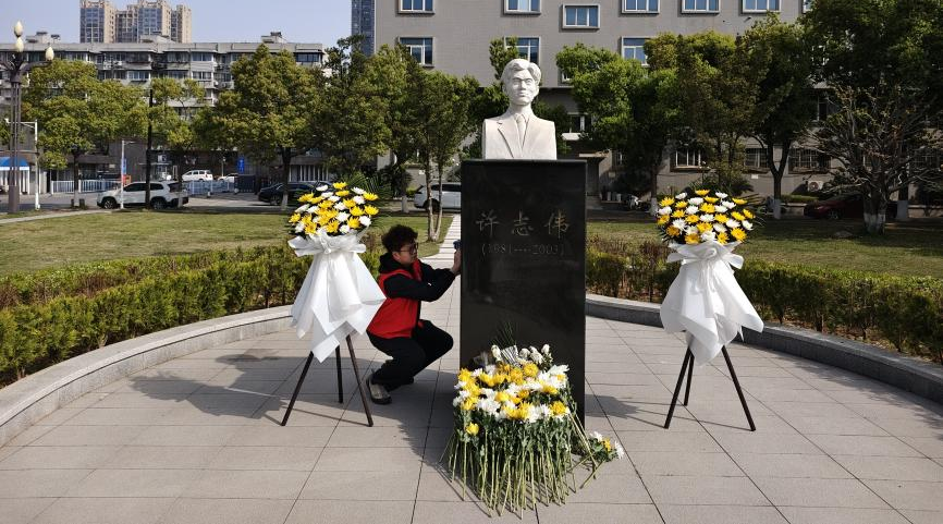 活动中,许志伟党员示范班、许志伟志愿服务队学生代表为许志伟雕像敬献花篮。全体师生代表面向许志伟雕像肃穆伫立行默哀礼。