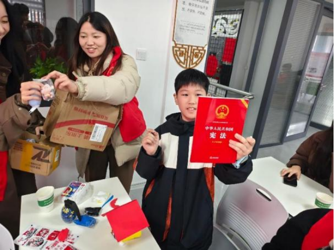 3月16日下午,学院“红细胞”志愿服务队联合法商学院(知识产权学院)、艺术设计学院、马克思主义学院走进文苑社区开展“学雷锋 树新风”文明实践活动。雷嗣超以《弘扬雷锋精神 爱心奉献社会》为题,讲述“钉子精神”等经典故事。焦紫怡开展《雷锋故事润童心 宝贝行动传爱心》主题宣讲,领读雷锋经典日记。张尚辉则将《宪法》《民法典》巧妙转化为“身体红绿灯”等趣味游戏。艺术设计学院的志愿者们组织小朋友们一起绘制雷锋主题手抄报,用色彩斑斓的画作传递雷锋精神。