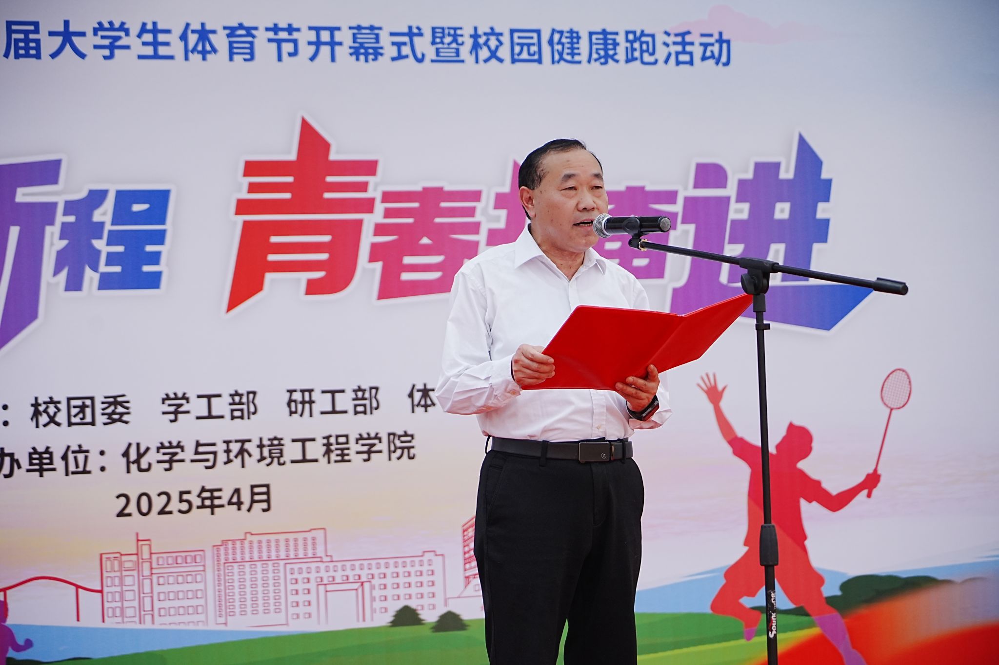 李志旭指出,体育承载着国家强盛、民族振兴的梦想,要坚持“健康第一”理念,推动体教融合,助力学生全面发展。他提出三点与大家共勉:一是以体育精神熔铸报国丹心,将赛场上的拼搏转化为“强国有我”的实践,厚植家国情怀;二是以强健体魄锻造栋梁之才,让“每天锻炼一小时”成为终身习惯,锤炼坚韧品格;三是以全面成长勇担时代使命,将运动场上的毅力与协作精神融入学业与人生,争做德智体美劳全面发展的新时代青年。他号召全体师生以本届体育节为契机,传承三十四载体育文化,在健康跑、球类赛事等活动中彰显工大人的昂扬斗志,用汗水书写青春答卷。