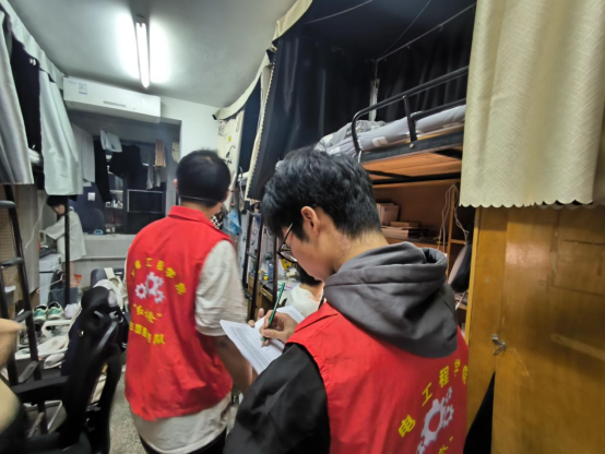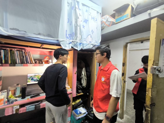 学院学生会权益保障部在寝室巡查过程中,对照《宿舍管理条例》重点围绕学生宿舍用电安全、消防设施、卫生状况等方面展开检查。针对发现的插线板乱接、违规电器使用、杂物堆积等安全隐患进行现场整改指导,并提醒同学们严格遵守宿舍管理规定,增强安全意识,共同维护寝室安全环境。