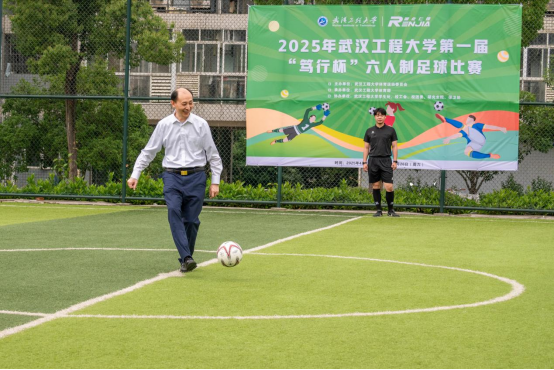 本网讯(通讯员 吴雪 胡莹莹)4月24日下午,由学校体育运动委员会主办,体育部承办的尊龙凯时人生就是博第一届“笃行杯”足球比赛在流芳校区西北区足球场成功举办。这是我校首次面向全体在校学生举办的六人制足球比赛活动,比赛设男子组、女子组两大项目,吸引了包括管理学院、材料科学与工程学院、法商学院等十余个二级学院超200名学子参与。校党委常委、副校长喻发全出席活动开幕式,并为球赛开球。体育部直属党支部书记、主任万莉莉,校党委学工部长严敏、校团委书记邓欢、党委研工部副部长张琼、体育部副主任范东芳、贺新家及主任助理吴雪参加开幕式。本次比赛由黄欣担任总裁判长,国家级裁判进行执裁,体育部研究生团队协同执裁保障比赛公平有序进行,圆满完成了各项赛事任务。