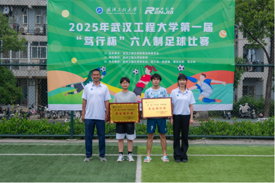 闭幕式上,体育部副主任贺新家、主任助理吴雪与仲裁委员会主任李浩智共同为获奖选手颁奖。贺新家教授在总结讲话中充分肯定赛事成果,并宣布首届“笃行杯”足球赛圆满落幕。
