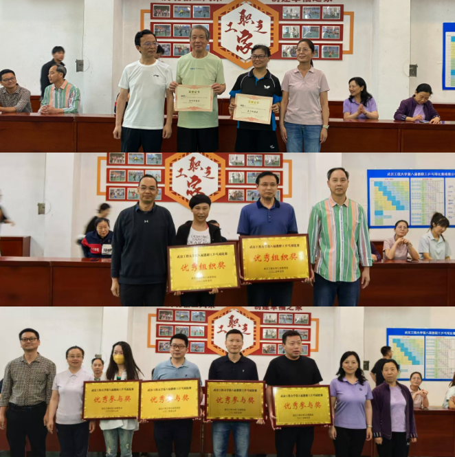 经过两天激烈角逐,机关分工会获得团体第一名;后勤保障处获得团体第二名;外语学院获得团体第三名。计算机科学与工程学院、机电工程学院、研究设计院、艺术学院、图书馆分别获得团体第四至第八名。邮电与信息工程学院、电气工程学院获得优秀组织奖;材料科学与工程学院、管理学院、国际学院、兴发矿业学院获得优秀参与奖。艺术设计学院朱成城老师、外语学院黎荣华老师获得优秀拼搏奖。