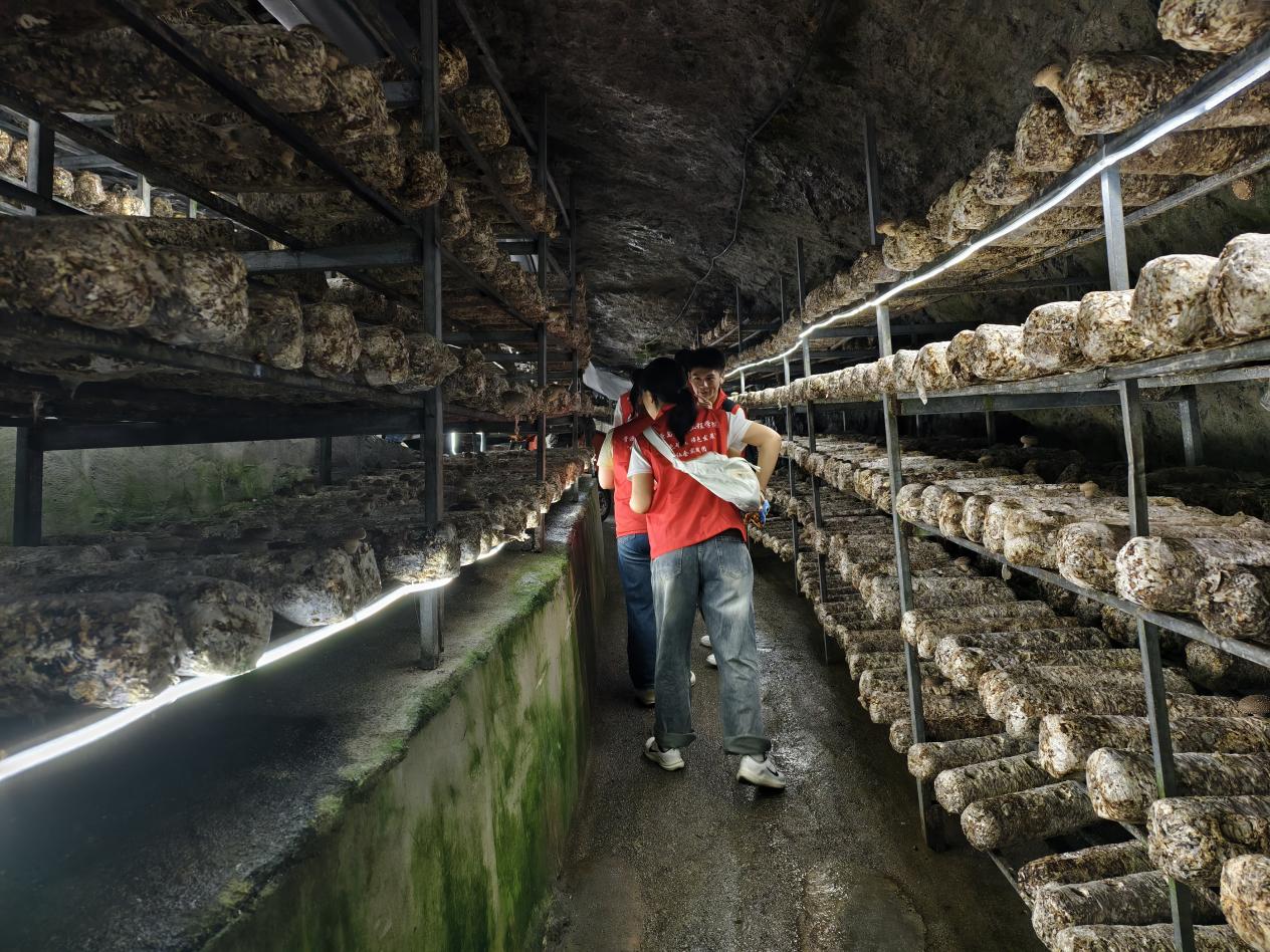 在舜磷矿业中控室,现代化开采设备有序运转。矿长介绍了智能设备、安全设施及绿色矿山建设实践。次日,为探寻 “绿色发展” 实践与 “矿洞经济” 模式,实践团来到食用菌矿洞。