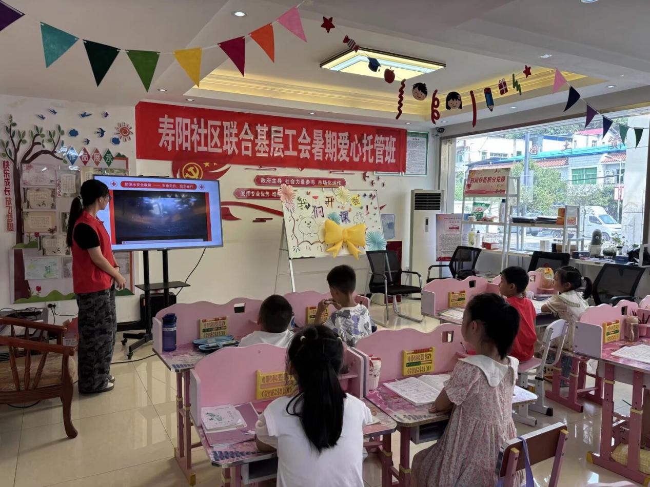 “点亮安全灯” 社会实践团则在第二日下午前往寿阳社区,联合基层工会暑假爱心托管班开展安全知识宣讲活动。成员围绕防溺水、交通、消防、网络安全四个方面进行详细讲解。